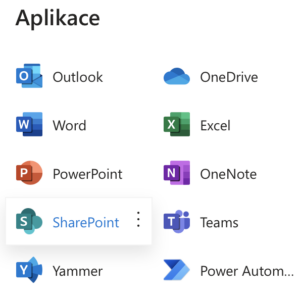 Nejprve je nutné přejít do SharePointu. Toho je možné docílit jednoduše přes portál office.com .