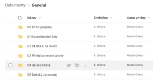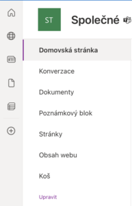 Po klepnutí na, v tomto případě společné, se zobrazí webová stránka, kde v levém menu klepnete na „Dokumenty“: